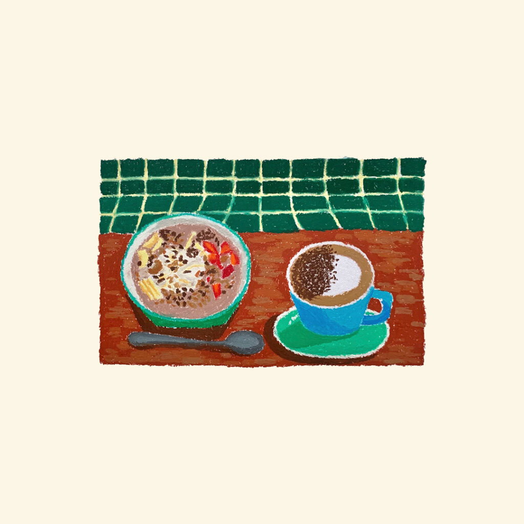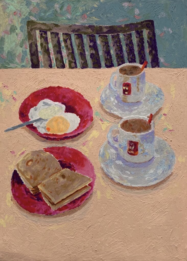 Ya Kun Kaya Toast Singapore – Oil pastels on paper – 29.7 x 21 cm – 2023